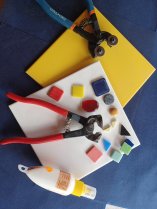 A l’atelier, vous découvrirez par vos yeux, par vos mains, les différents supports, et matériaux, comme les carreaux de céramique, des tesselles diverses et variées aux multiples couleurs (pâtes de verre, émaux de Briare, grès cérame) mais aussi, des coquillages, de la vaisselle cassée (picassiette)et pourquoi pas, ce que vous voulez amener !